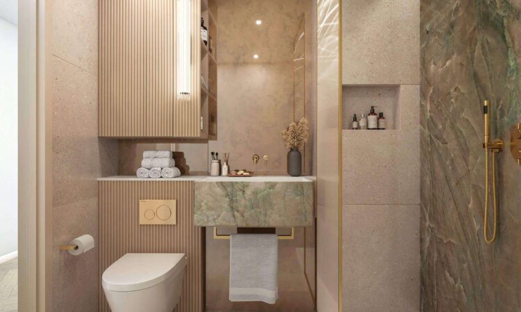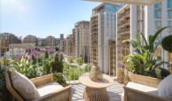The master bedroom boasts ample space, built-in wardrobes, and a luxuriously appointed en-suite bathroom with high-end fixtures. The second bedroom is equally well-sized, making it ideal for guests, a home office, or additional living space. A second family bathroom complements the apartment’s layout, finished to the highest standard with elegant materials.