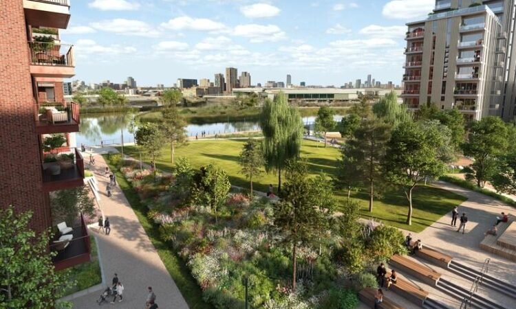 The development is surrounded by acres of green space, including a landscaped 2.5-acre riverside park, perfect for children to play or for family outings. Residents can also enjoy a range of amenities, such as a swimming pool, cinema room, games room, and co-working spaces. Poplar Riverside is well connected by public transport, including the Jubilee Line and DLR, offering easy access to central London and beyond.